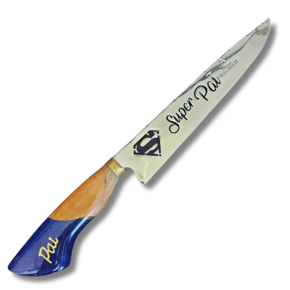 Faca Picanheira Artesanal de Churrasco Dia dos Pais 10" Aço inox 420c 4mm Espessura Cabo Madeira nobre e Resina - Personalizada