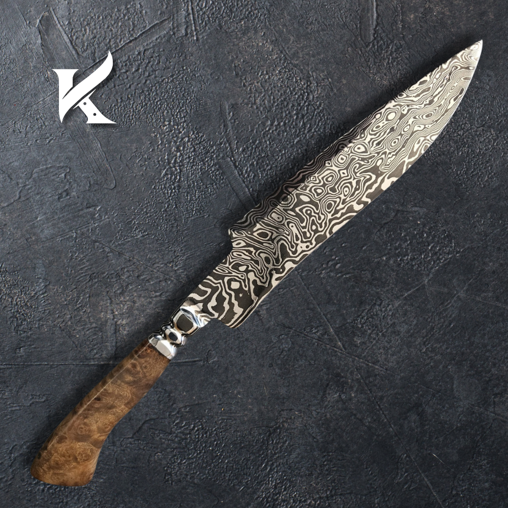 Faca Aço Damasco Picanheira 320 camadas. Cabo Burl de imbuia. Garantia Vitalícia