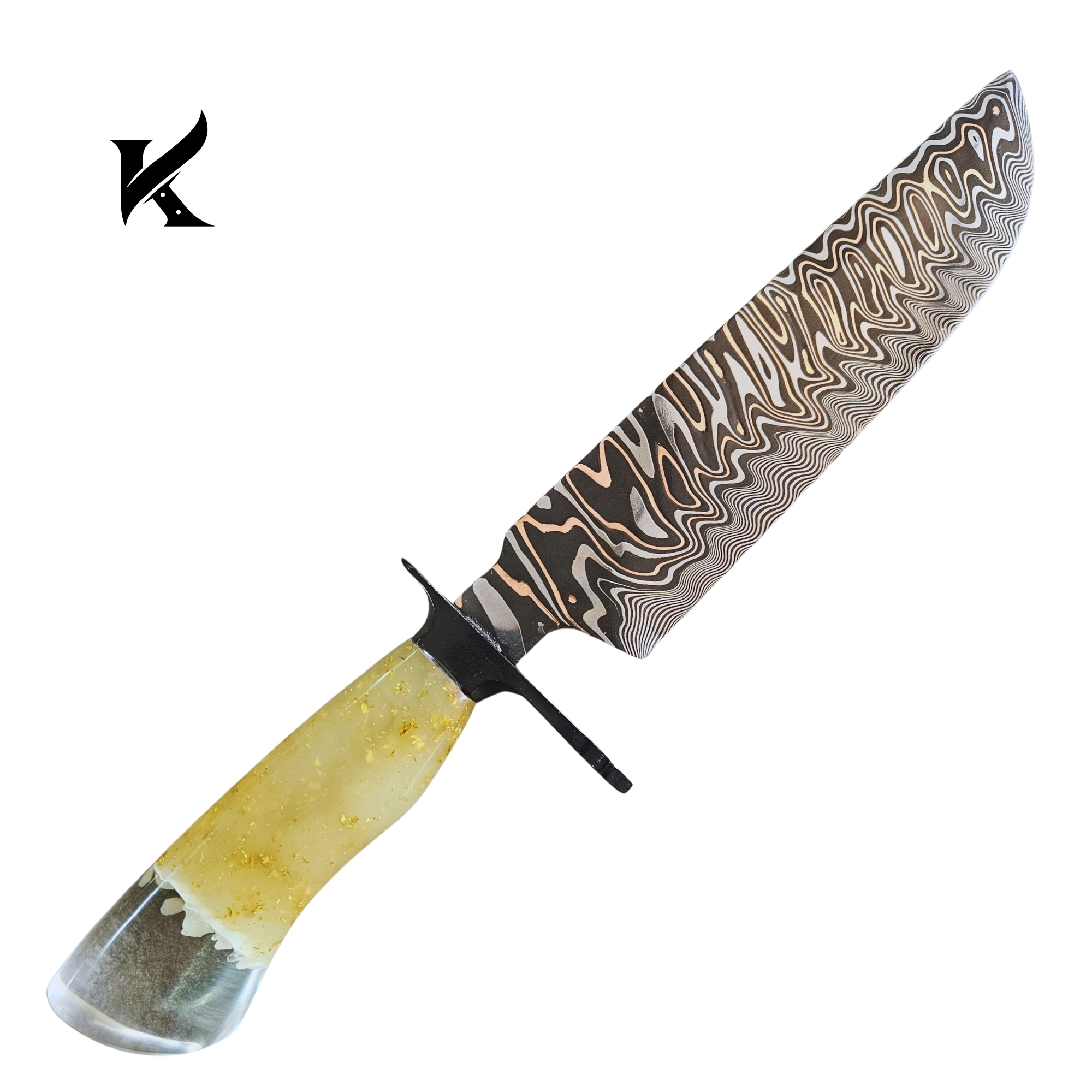 Faca Aço Damasco com guarda, Cabo Resinada nobre com guarda. Garantia Vitalícia