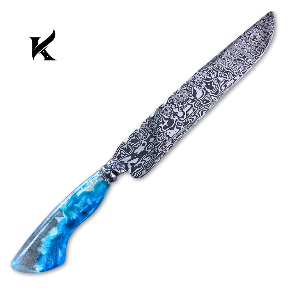 Faca Aço Damasco Picanheira do chefe 280 camadas. Cabo estabilizado fotoluminescente. Garantia Vitalícia