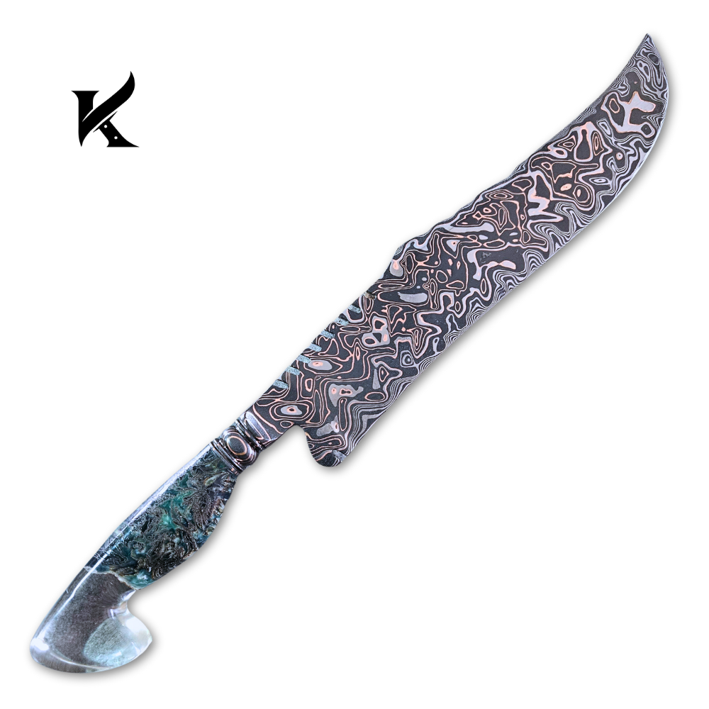 Faca Aço Damasco Tiger Picanheira do chefe 480 camadas. Cabo estabilizado fotoluminescente. Garantia Vitalícia