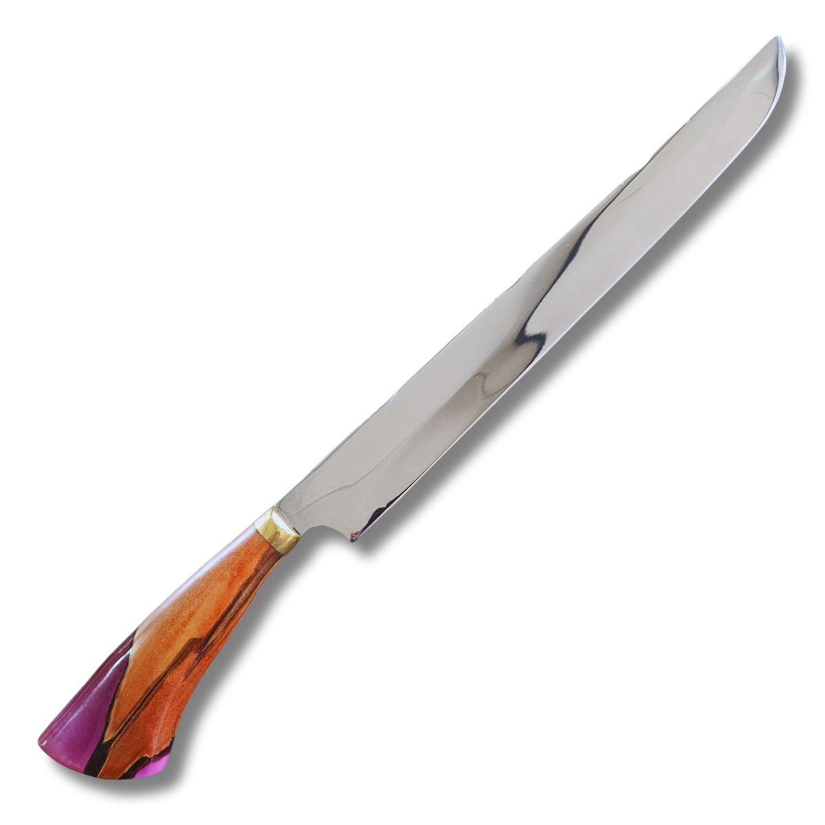 Faca Artesanal De Churrasco 12" com Bainha em couro e personalização grátis. Cabo Madeira nobre e resina.