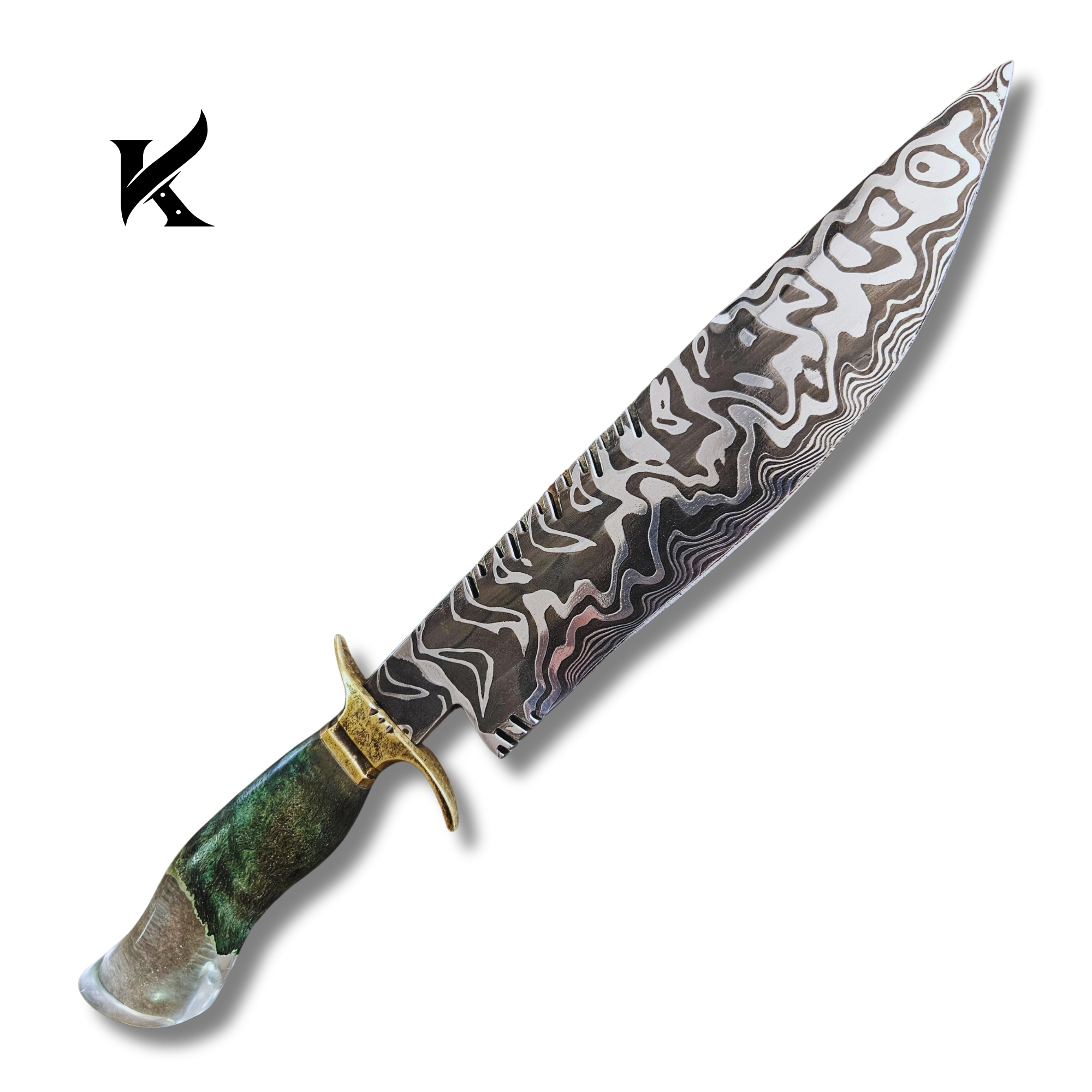 Faca Aço Damasco com guarda, Cabo Resinada nobre com guarda. Garantia Vitalícia