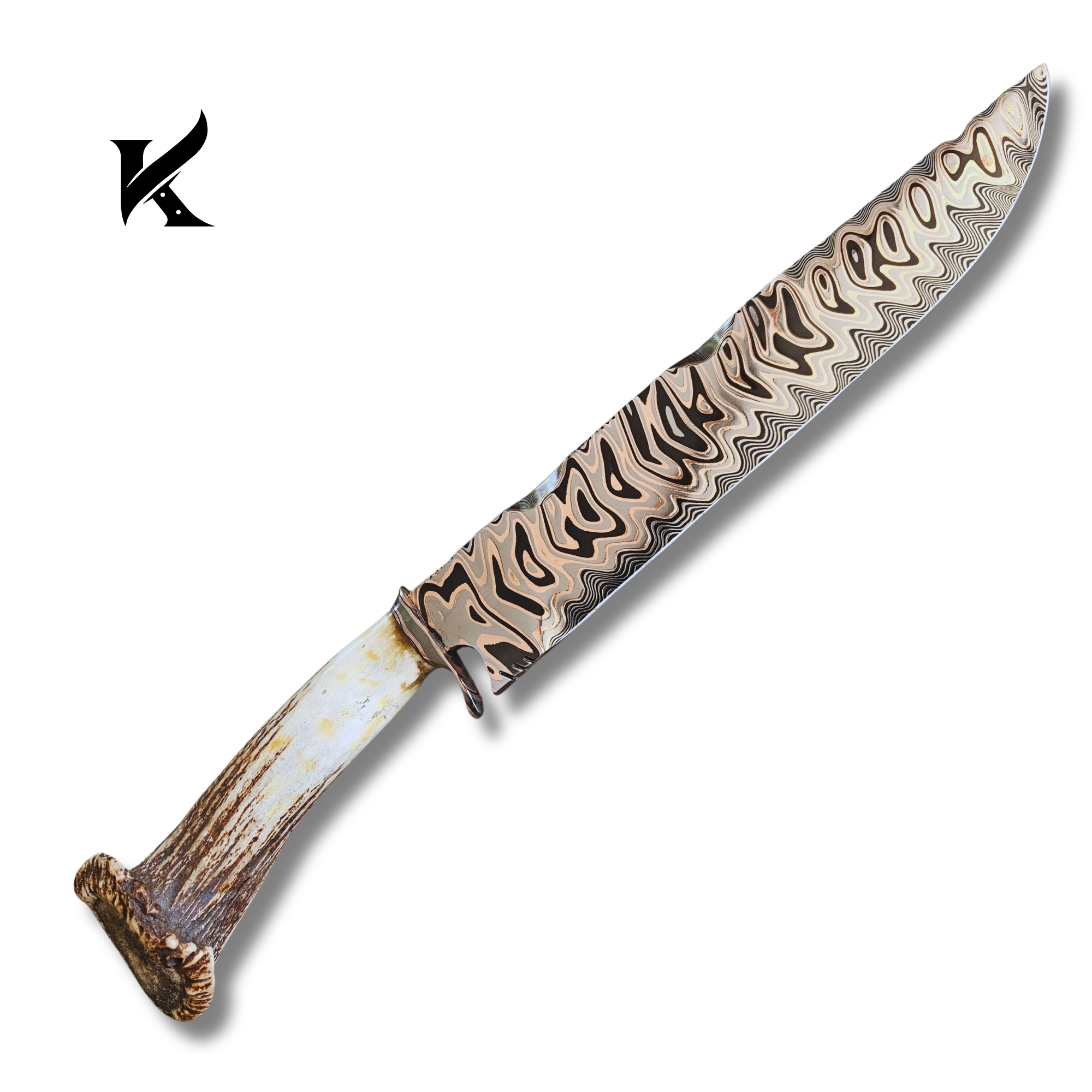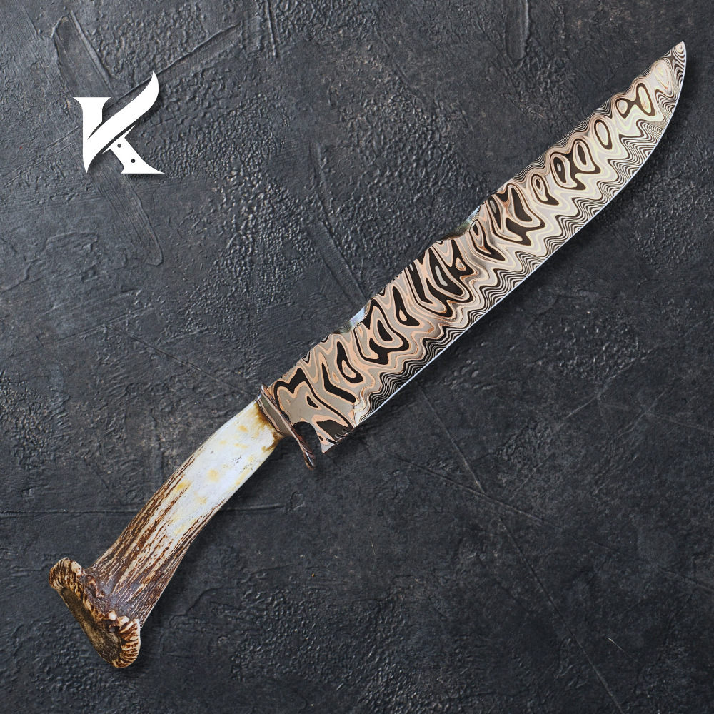 Faca Aço Damasco Tiger, Cabo Chifre de cervo. Garantia Vitalícia