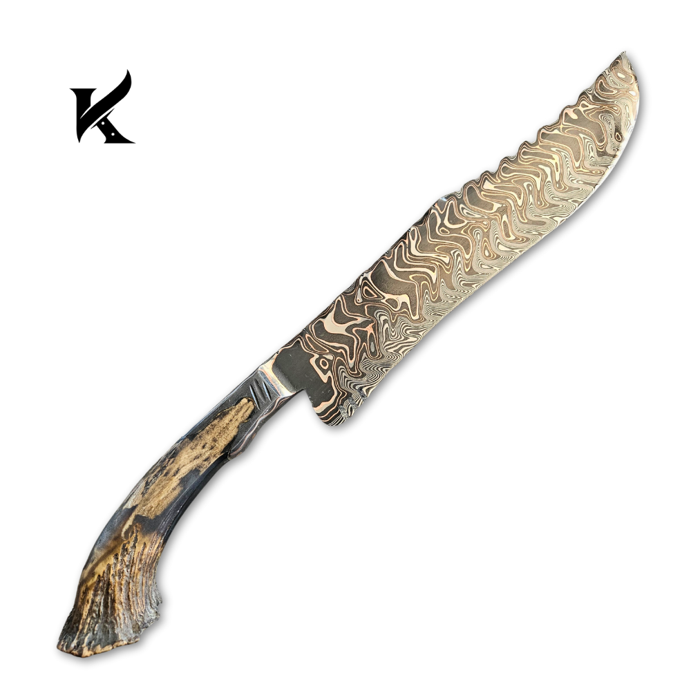 Faca Aço Damasco Tiger, Cabo Coroa chifre de cervo. Cutelaria artesanal, Garantia Vitalícia. O melhor presente para quem você ama!