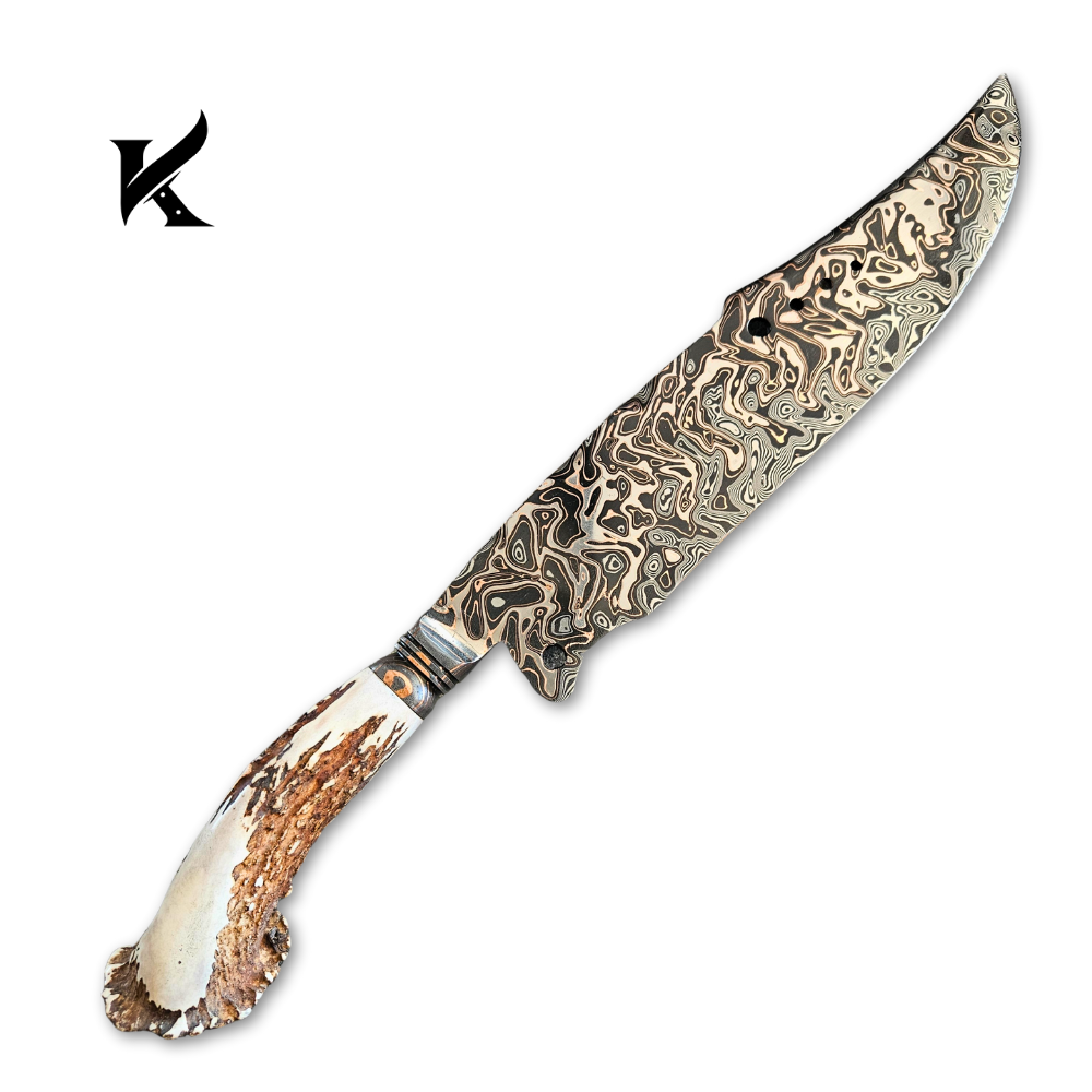 Faca Aço Damasco Tiger, Cabo Coroa chifre de cervo. Cutelaria artesanal, Garantia Vitalícia. O melhor presente para quem você ama!